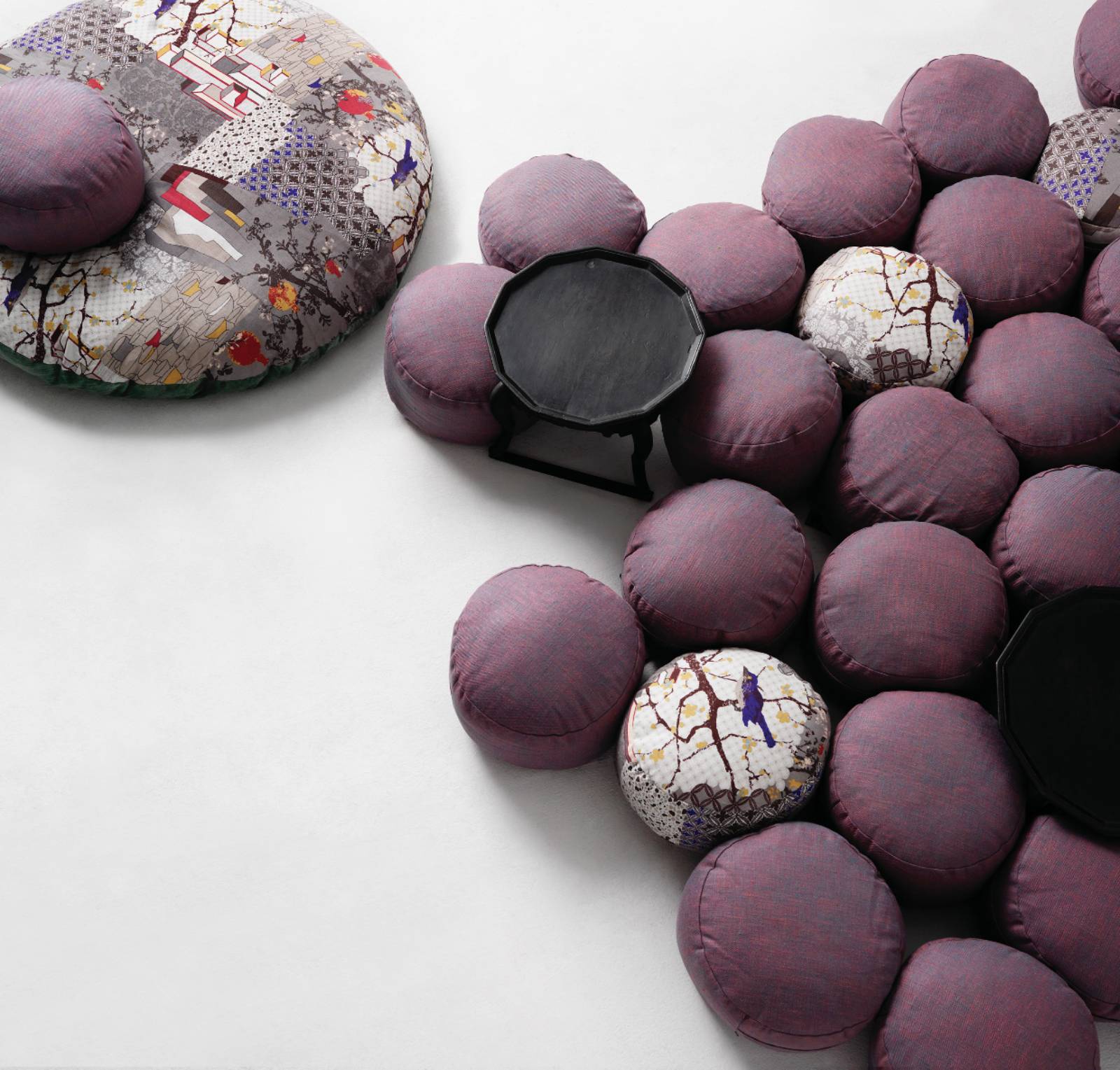 모노콜렉션은 여러소재의 계절적인 감각과 디자인으로 쿠션이 장식적인 기능뿐 아니라 모듈형식으로 제작되어 소프테리어 가구의 역활을 하기도 한다. 모튤쿠션은 공간의 스케일에 맞춰 자유롭게 설치하고 유연한 물성이 공간의 특성에 잘 적용하여 사용하기 좋다. 또한 남은 천을 활용하여 조각잇기 방식으로 한국고유의 아름다움을 현대생활에서 즐길 수 있도록 하고 있다.