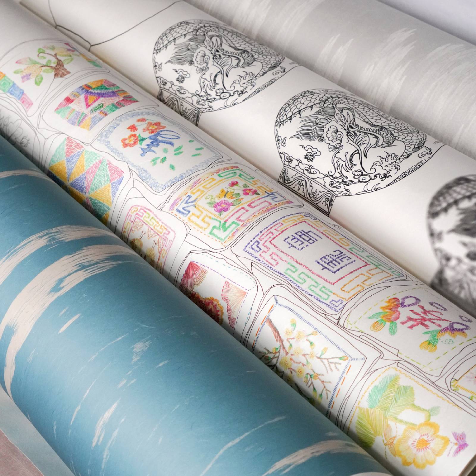 우리 나라 전주에서 생산되는 고유의 순지 창호지위에 디지털프린트로 제작된다. 조금 더 깊은 미감과 견고성을 필요로 할때는 판화지로 제작한다. 주거공간이나 호텔등의 벽지, 또는 아트워크, 가구에 이르기까지 다양한 적용을 통해 실용미술의 역활을 하고 있다. 공간의 장소성을 벽지위의 그림으로 이야기를 대변하는 뜻그림이다. 기존에 모노콜렉션에서 생산되는 페브릭이나 주문생산되는 페브릭을 종이배접하여 제작, 시공한다. 한지벽지와는 다른 질감과 촉감을 느낄 수 있고 실크는 물론 린넨,면, 유수의 쟈가드원단으로 다양한 페브릭을 응용할 수 있다.또한 프로젝트 자재로 방염을 원하는 분들께는 45일정도의 제작기간을 갖고 공급하고 있다.
