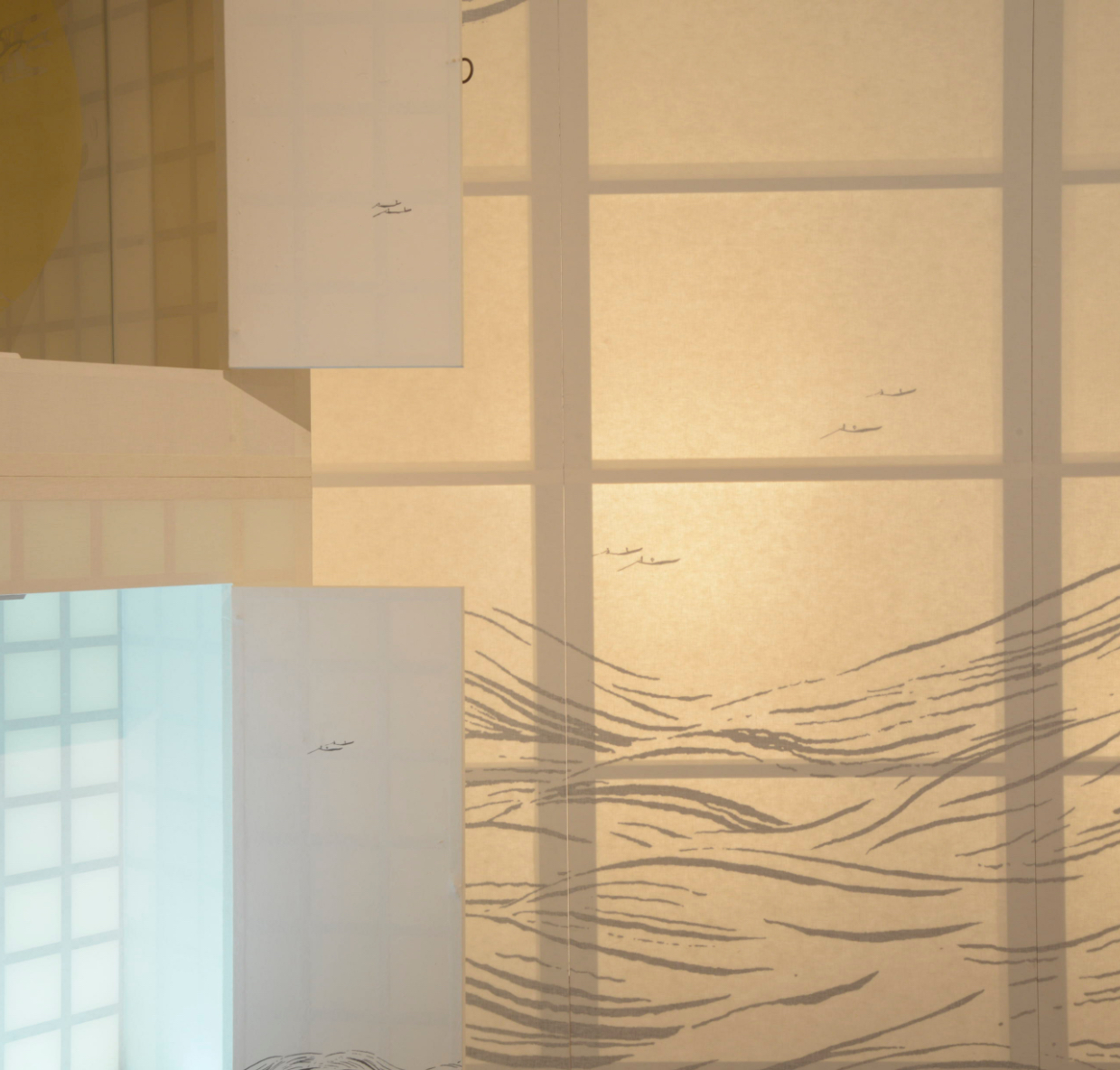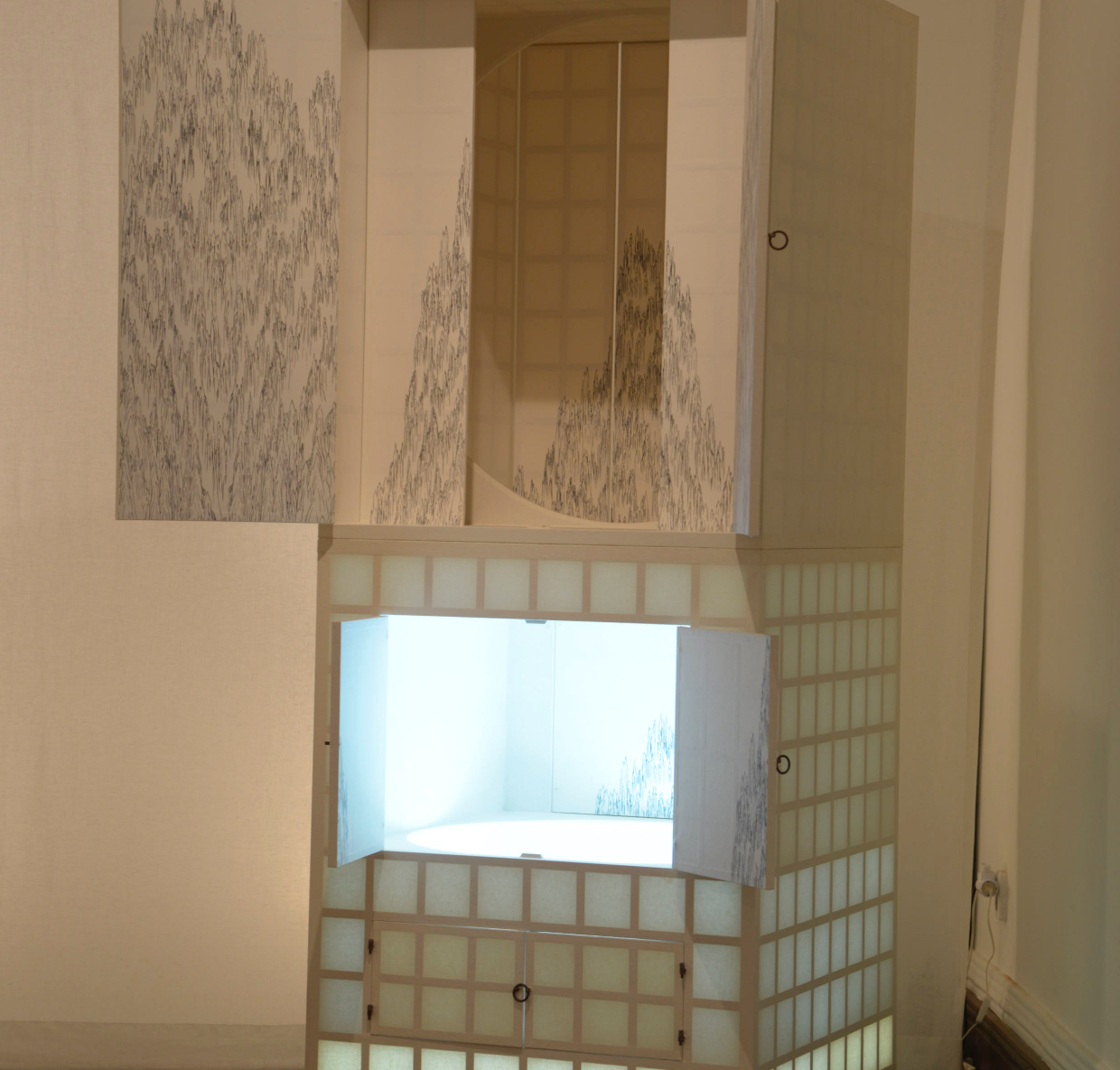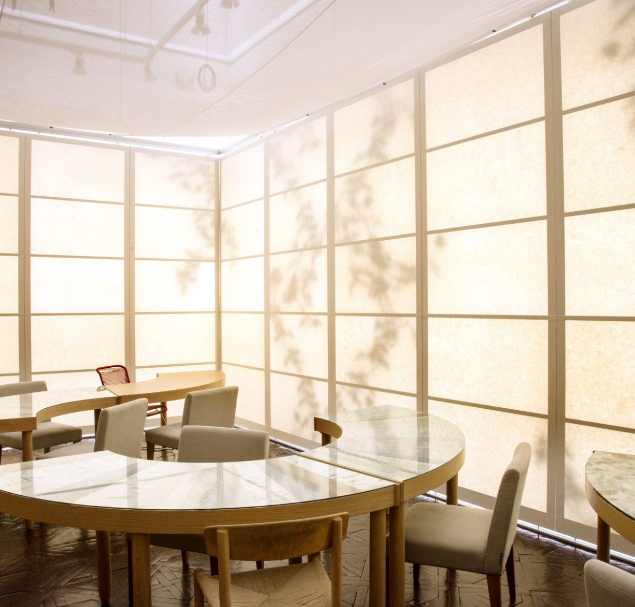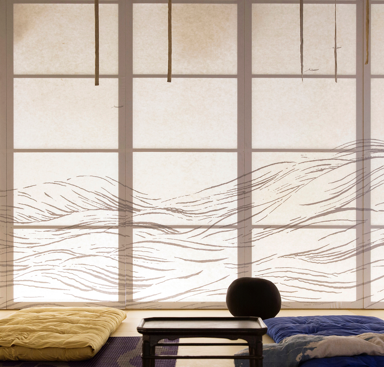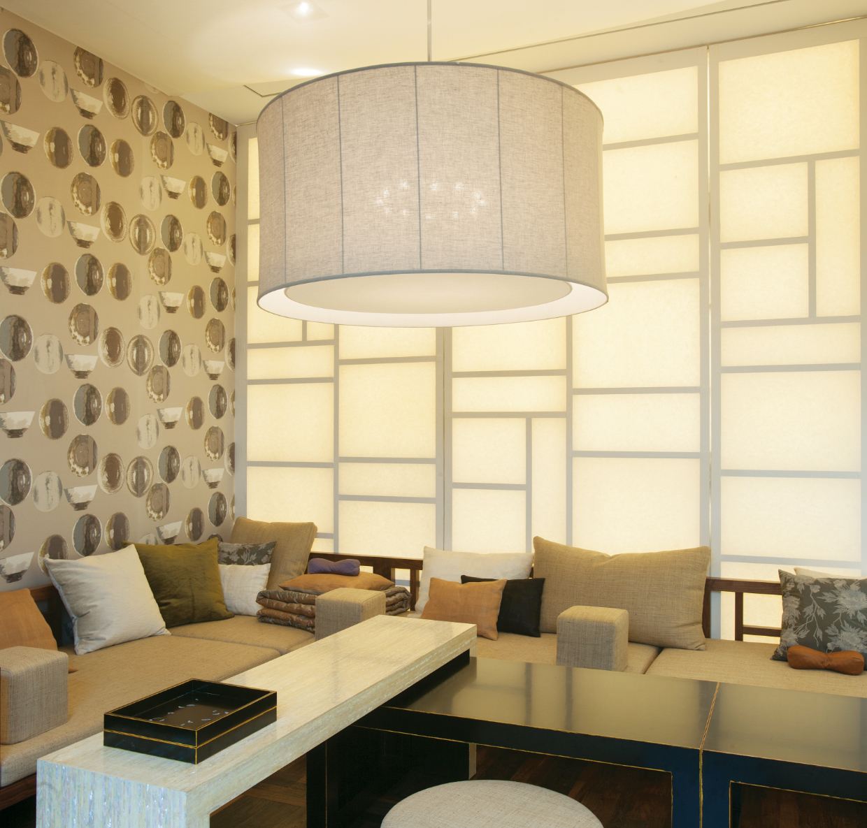 Mono Collection lighting pursues the mild and simple features associated with natural light. The electric light within Hanji rice-paper or linen lampshades is LED, and communicates with the fabric in order to create a deep aesthetics and visual serenity. Shades are also be produced to evoke the natural shadows of bamboo and flowers, thereby further changing the energy of a space. In addition, lighting installed within pieces of furniture serve both a useful and evocative function.