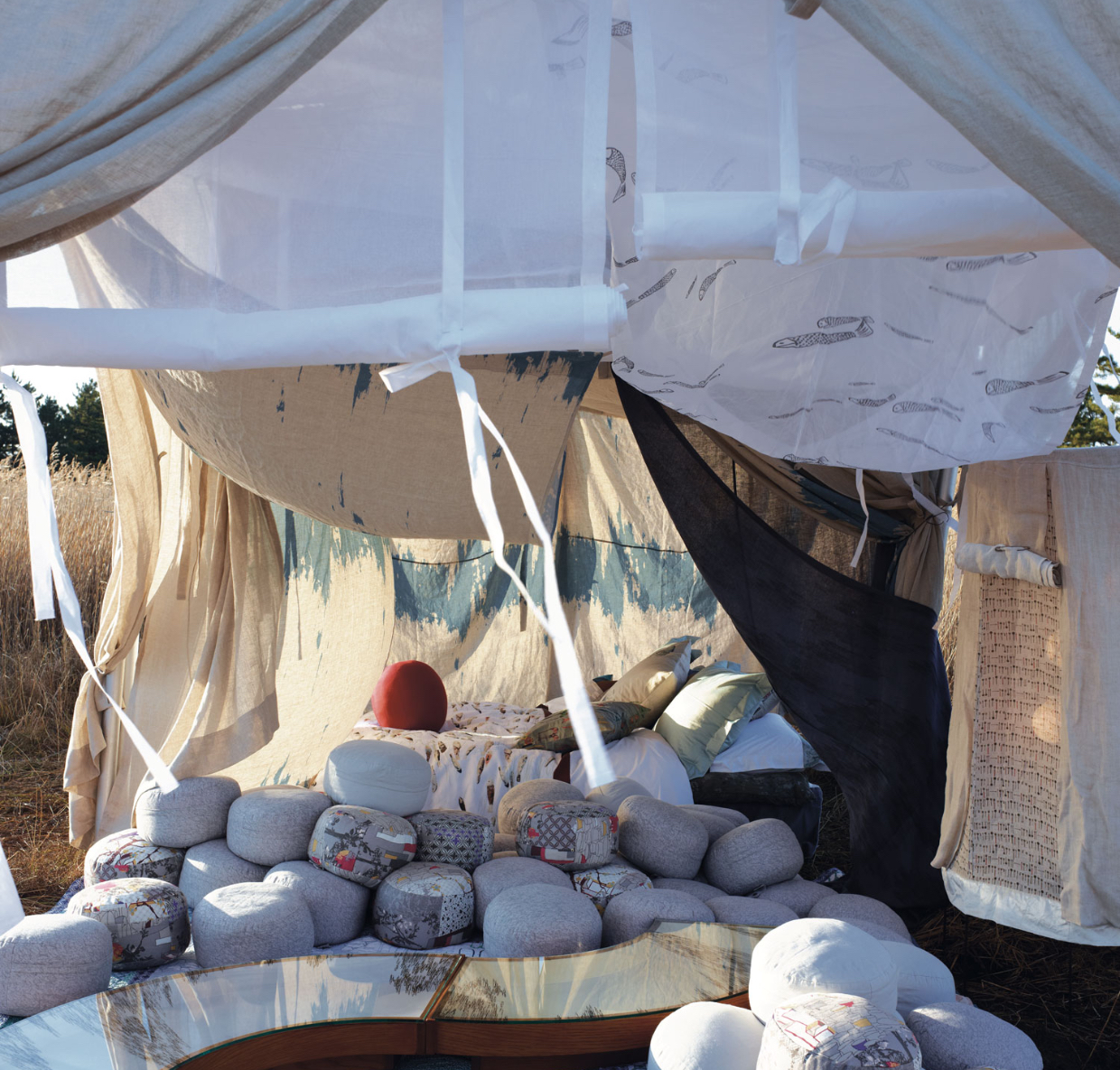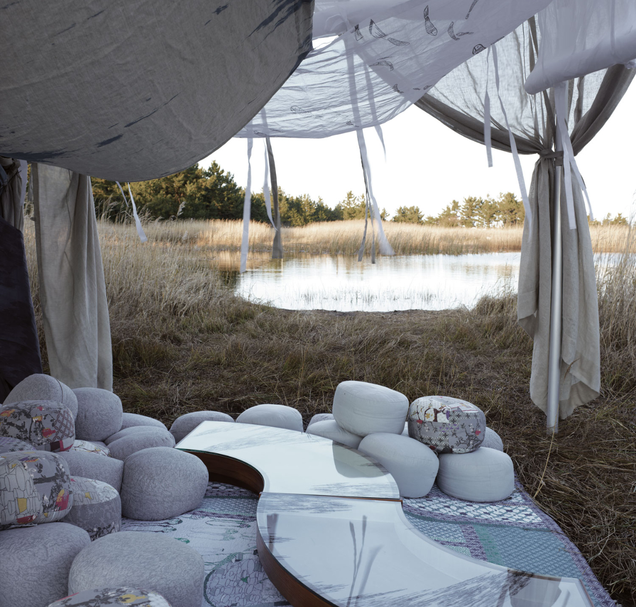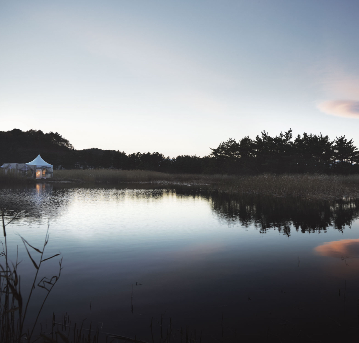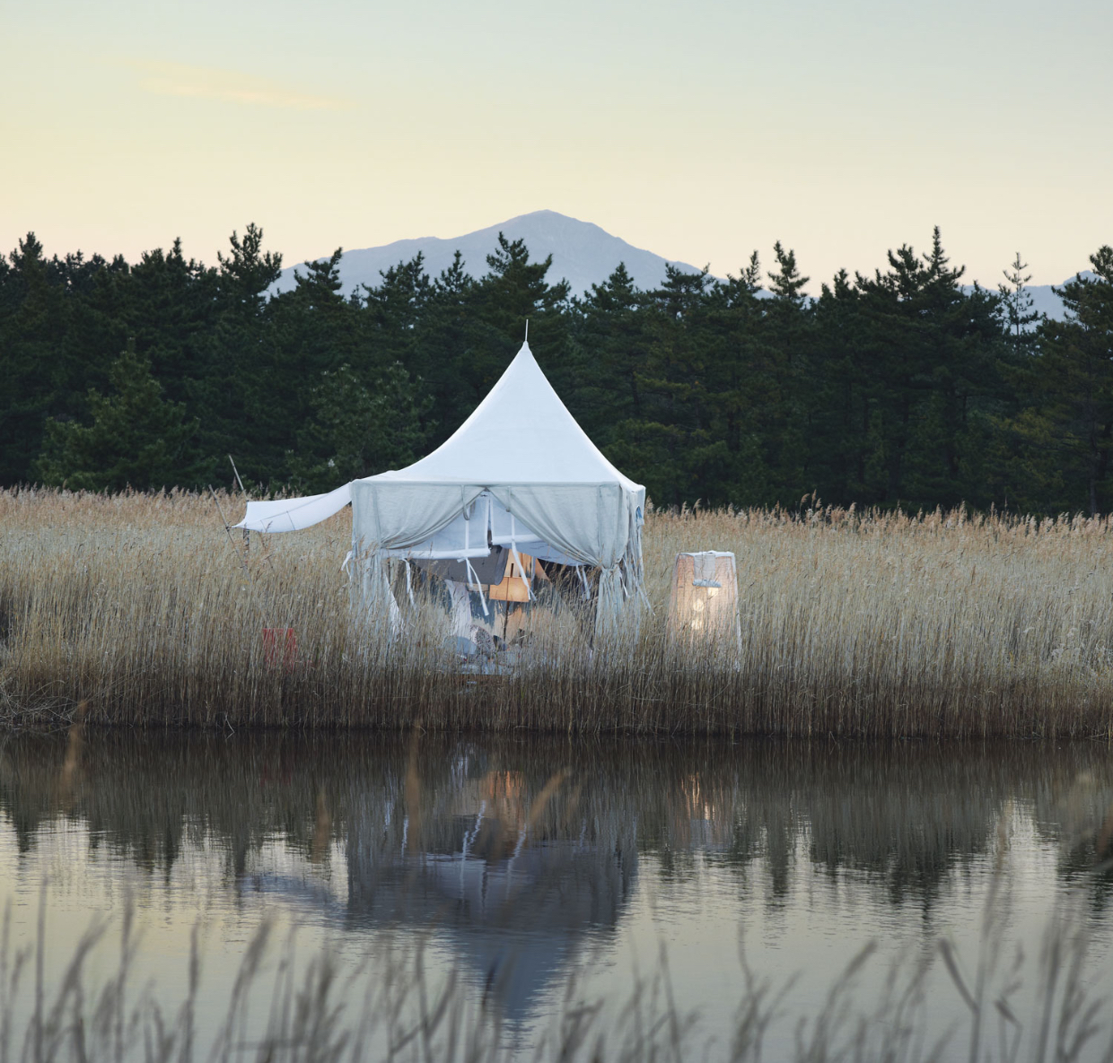 모노콜렉션의 2013년 트랜드의 한조각, 화이트 온 화이트를 테마로 펼친 어느 서정적인 노매딕하우스. 원하는데로 변주가 가능한 모듈가구와 모듈큐션으로 구성된 이 탠트하우스가 갈대숲이 자아내는 초현실주의의 작품같은 초겨울의 고즈넉한 풍경속으로 잦아든다.